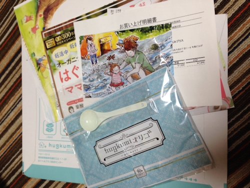 はぐくみプラスの専門店を始めたきっかけになったエピソードから、商品説明、利用者からの質問など知りたいことがたくさん詰め込まれているパンフレットと商品が封筒の中から出てきました。