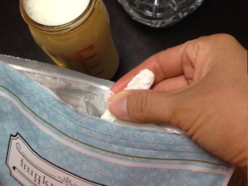 いつものように人肌温度のミルクを作り、あとは1杯分(これも説明書きに1杯が赤ちゃんには適量とありました)のはぐくみオリゴを入れよくかきまぜました。