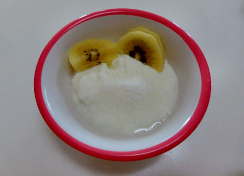 翌日からは毎朝ヨーグルトにオリゴのおかげダブルサポート顆粒をかけて食べさせるようにしました。
